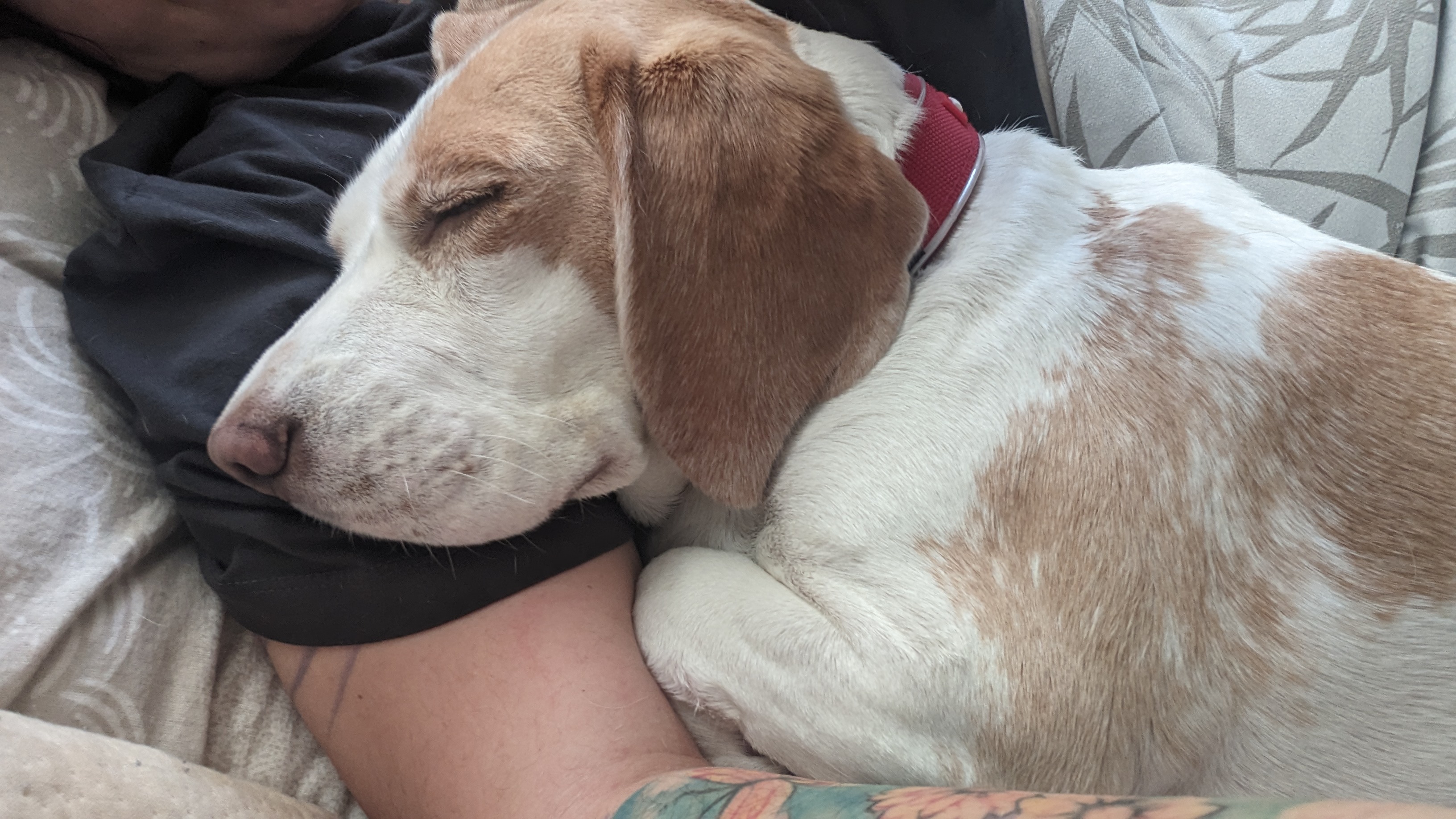 Meet Ruby, the 3 year old Beagle and instigator of chaos. When not mercilessly hunting down snacks, she can be found snoozing on the sofa.