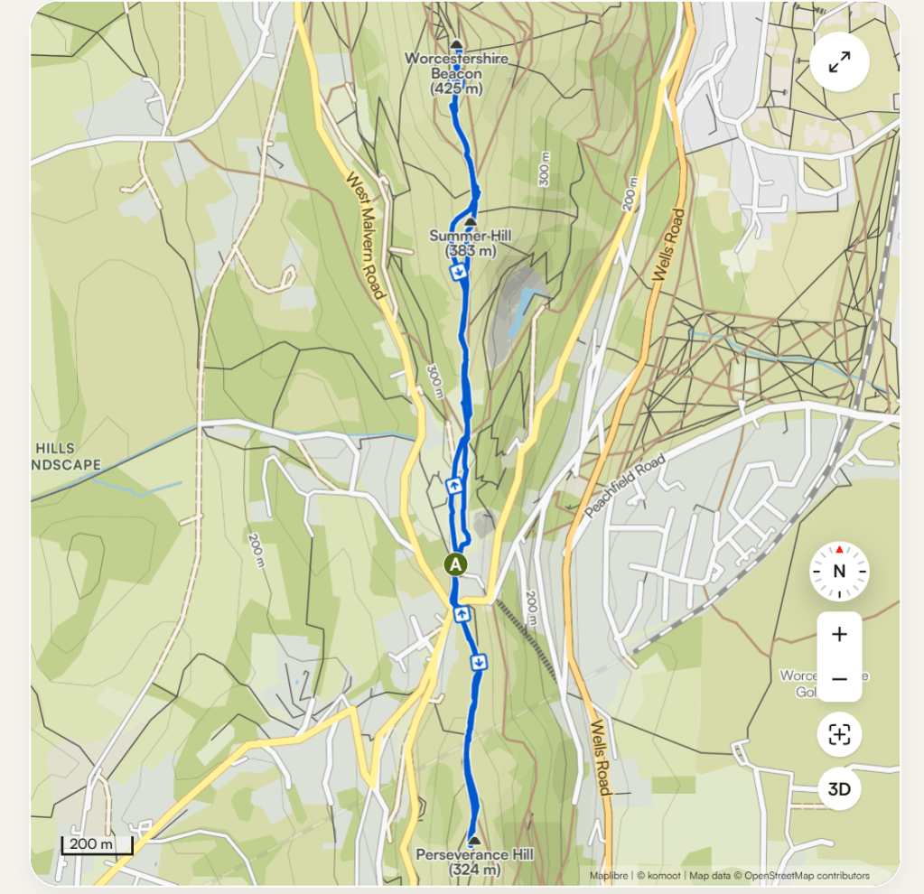 My route was focused on heading up to the Worcestershire Beacon, the county top for Worcestershire as well as another Marilyn whose summit sits at 425 metres/1,394 ft) above the countryside below. The Malvern Hills range runs for 13 kilometres/8.1 mi north-south along the Herefordshire-Worcestershire border and is comprised of a number of seperate hills which can be linked together via the numerous walking paths.