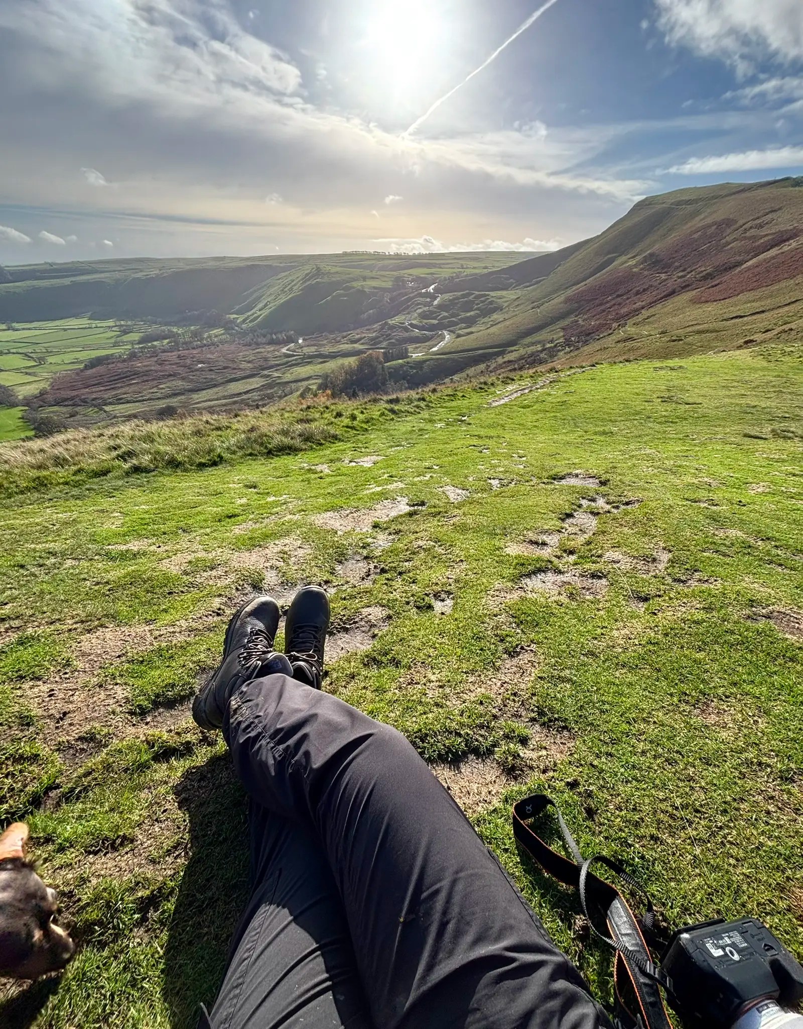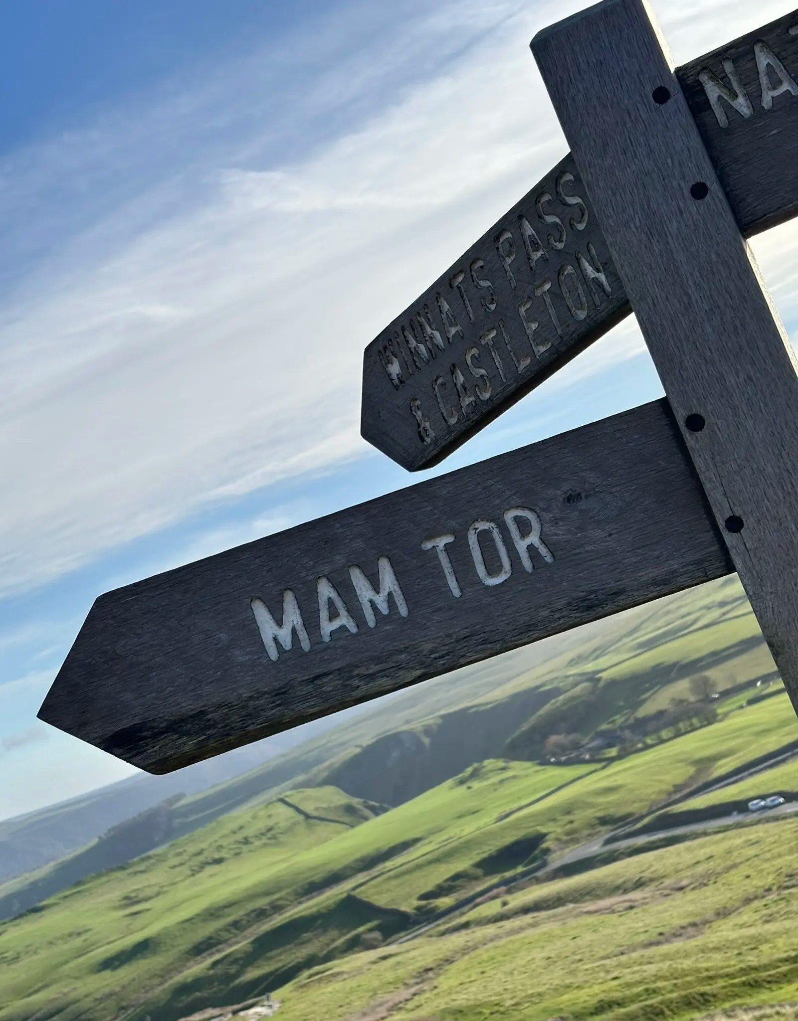 Having never visited Mam Tor before but already being aware of how busy it gets with traffic, parking and people… we visited in the week and were able to easily find a spot on the National Trust Mam Nick carpark, from where it is just a short uphill hike to Mam Tor summit. From there we followed the 3km Great Ridge, one of the most iconic and stunning stretches in the Peak District. Hollins Cross, the lowest point on the ridge, is an old-time crossroads between the valleys where people used to carry coffins between villages.