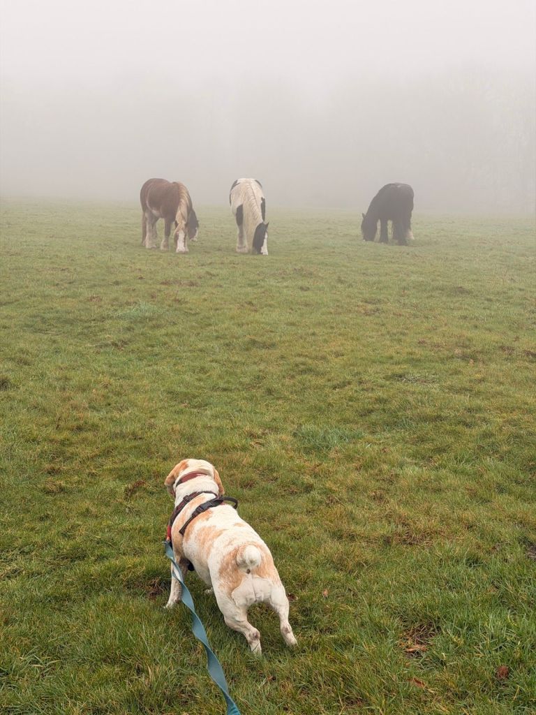 I’m sure that on a clearer day, this would have been a much nicer hike, but today was not that day. With very limited visibility and deep mud, May Hill definitely didn’t show itself off. Surrounded by forest and right on the edge of the Forest of Dean between Gloucestershire and Herefordshire, this is the hill with the unmistakable crown of pine trees on top and numerous trails you can explore. Free roaming horses grazing were a welcome site in an otherwise foggy featureless landscape. Because of that, May Hill has been added to the ‘ones to return to again’ list to really see what the area has to offer.