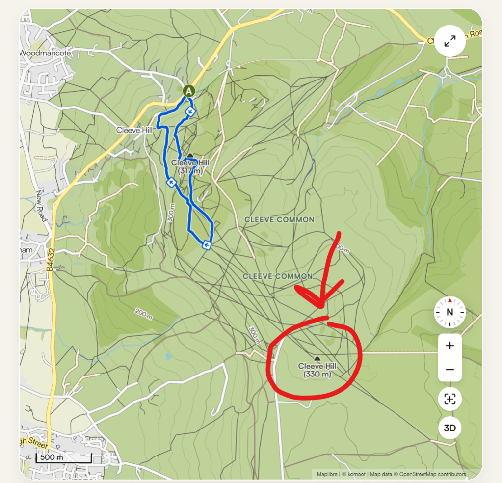 Seriously though, why is there two hills on the same common with the same name, both named Cleeve Hill with only 13m difference in height?? That’s just stupid.