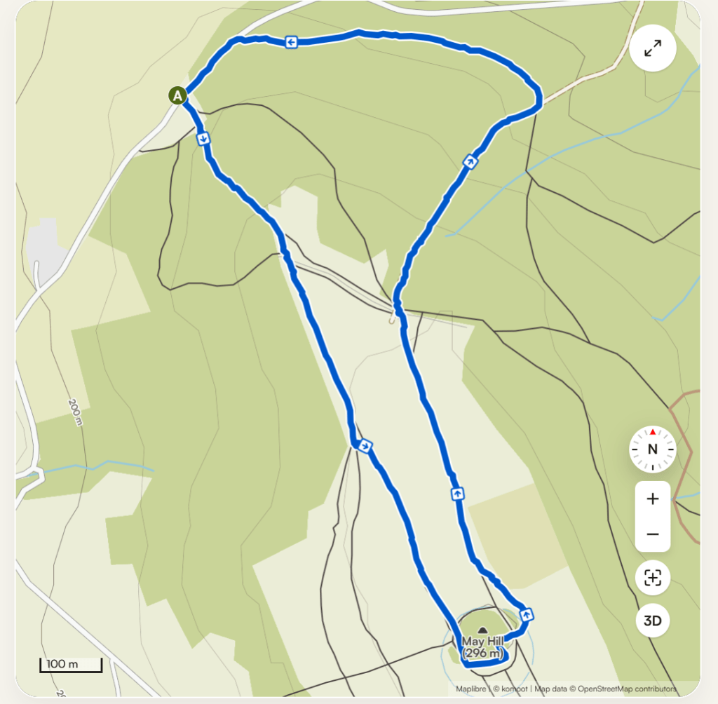 Most people visiting appear to be cyclists or hikers according to Komoot/Strava and from nearby Pencombe. But with dogs in tow I wasn’t prepared to risk long stretches along roads just to tick this one off the list, choosing to park close by in a layby out of the way of farm vehicles and other traffic.